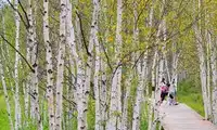 The second part of the Nine Bends and Eighteen Bends is the wetland park, which is truly accessible. The wooden plank road winds through the birch forest. Summer is a good time to camp in the wetland park. After the National Day holiday, you can only see the bare birch branches.