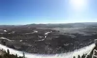 Climb to the top of the tower and overlook the winding river, which is now a strip of white ice.