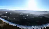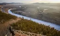 It is a naturally formed pristine wetland. Park your car and climb to the observation deck for a breathtaking view of the magnificent winding mountain, with layers of pine trees on the mountain and the icy river winding its way. The commanding view is truly breathtaking.
