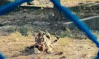 The live rooster was stuffed through a narrow gap in the car into the tiger's world. It had virtually no chance of fighting back, and was instantly taken down by the watching tigers. Even the rooster struggled in the tiger's jaws. The tigers in the entire enclosure looked lethargic, like a winter's day. However, a friend in the car told me that if we had brought a cow, there would have been a thrilling fight.