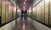 The memorial corridor has plaques on the walls commemorating the more than 3,000 victims killed in this headquarters.