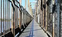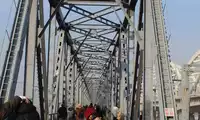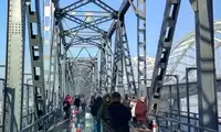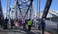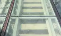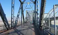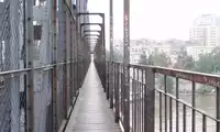 The free bridge, the former railway bridge is now a sightseeing bridge. There is a section of the bridge that is made of glass, but the glass is quite stained and one piece is broken.