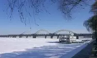 There are two bridges across the Songhua River: one new, one old, one black, and one white. The old black bridge, built during the Guangxu reign of the Russian Tsar and abandoned for many years, has been renovated and transformed into a tourist attraction, providing direct access to the north bank of the Songhua River. The bridge features a glass deck and is open to the public free of charge.