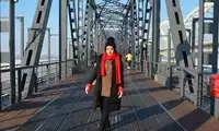 The Songhua River Railway Bridge is Harbin's first cross-river bridge. It was nearly dusk when we arrived, the setting sun bathing the river in its afterglow. Several couples were taking photos on the bridge. The bride, wearing a strapless wedding dress, wore a beaming smile despite the cold breeze. After they left, I ran to their photo booth and struck a few poses myself, but I didn't quite get the "blockbuster" look I'd hoped for.