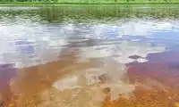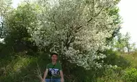 The water is very clear, but brown. In June, it is full of pear blossoms. The driver said it was pear blossoms.