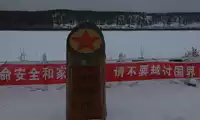 Here is China's northernmost point and boundary marker, and Russia is across the way.