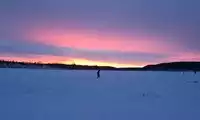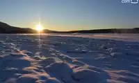 The Ussuri Shoal is a shallow beach on the Heilongjiang River bordering Russia. The natural scenery is very beautiful. In winter, the sun is about to set at three o'clock in the afternoon.
