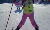 It was my first time skiing, and it was great. The child had a good balance, and the ski slope was large but not too steep.