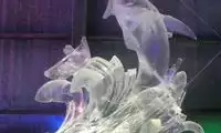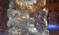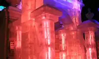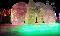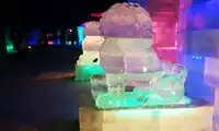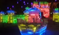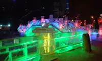 The ice sculptures in the city center are expensive, but the night view is good when you pass by them.