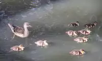 Mandarin ducks are playing in the pond, willow trees are green and shady, and magpies are flying in pairs.