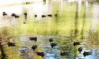 There are amusement facilities in the park, flowers in summer, and an artificial lake. In spring, mandarin ducks will fly here to rest, and there is also a cage where monkeys occasionally appear.
