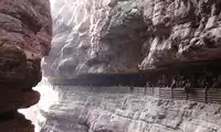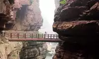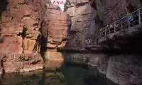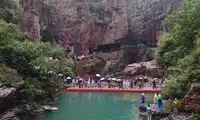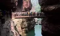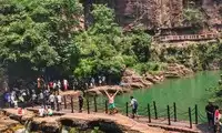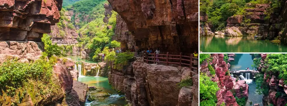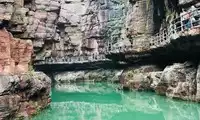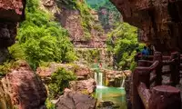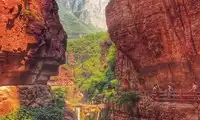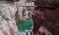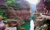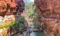 Hongshi Gorge is also called "Wenpan Valley" because the cliffs are red throughout. The entire canyon is composed of red rock cliffs and is a rare Danxia landform in northern China. It is known as the "No. 1 Scenery in the Central Plains". The scenic area is beautiful, secluded, majestic and dangerous. There are springs, waterfalls, streams and pools in one valley, and it has the reputation of "Bonsai Gorge".