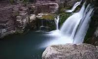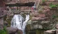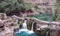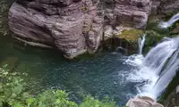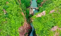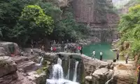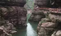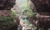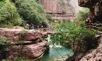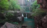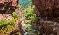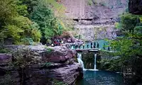 Hongshi Gorge (Wenpan Valley) is located in Yuntaishan Scenic Area, Xiuwu County, Jiaozuo City, Henan Province, and is located in Zifang Hunan. The valley is cool and pleasant in summer, and moss and grass grow green in winter, so it is called Wenpan Valley. It combines springs, waterfalls, streams, pools and streams in one valley, integrating majestic, dangerous, strange and secluded beauty, and is praised by landscape experts as "a boutique gallery of natural landscapes."
