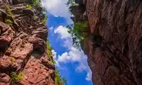 Yuntaishan Hongshi Gorge is the essence of Yuntaishan scenic spots and is highly recommended. The approximate time required for the tour is about one and a half hours. The canyon is 1,500 meters long and is a one-way scenic spot. There is a narrow canyon called "One Line Sky" at the south end of the valley entrance, and there is the Bailong Waterfall with a height of more than 60 meters. The high mountains on both sides stand like a stone tower, which is exactly the west gate of Yuntaishan.