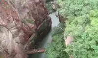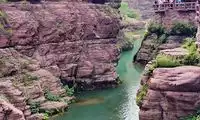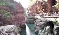 Hongshi Gorge is a representative scenic spot in Yuntaishan. The geology is different from other canyons. The rocks are red. In May and June, the green mountains and the red rocks look very beautiful. It is cool to touch the rocks in the canyon.