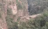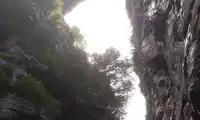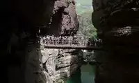 The scenic area is located at the bottom of the canyon. You need to walk down to the bottom of the valley, walk 1.5 kilometers, and then climb up.