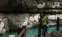 It's not bad. Walking in the valley, the mountain breeze is blowing. It's just right in April. The water is not hot, but you can see the bottom clearly. There are also wild fish. After entering for a while, there is a cave that reminds me of "Peach Blossom Spring". There is a small opening in the mountain, as if all the light is gone. The boat enters through the opening. It is very narrow at first, but only people can pass through it...