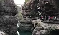 Yuntaishan Hongshi Gorge is the essence of Yuntaishan scenic spots and is highly recommended. It gathers springs, waterfalls, streams, pools and streams in one valley, and integrates the majestic, dangerous, strange and secluded beauty. It is praised by landscape experts as "the exquisite corridor of natural landscapes". The approximate time required for the tour is about one and a half hours. The canyon is 1,500 meters long. Hongshi Gorge is a one-way scenic spot. There is a narrow canyon called "One Line Sky" at the south end of the valley entrance, and there is the Bailong Waterfall with a height of more than 60 meters. The high mountains on both sides are like a stone que, which is exactly the west gate of Yuntaishan.