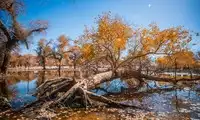 The Ejina Populus euphratica National Nature Reserve in Inner Mongolia is located in the center of Ejina Banner - Ejina Oasis, adjacent to Dalaihub Town, the seat of the Ejina Banner Government, to the west and to the Juyan Lake to the north. The total area of the reserve is 26,253 square kilometers. This is the hometown of Populus euphratica and the home of the desert.
