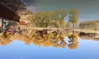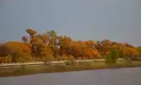 The wind blew, and ripples appeared in the water, with the reflection of the poplar forest looming. If there was no wind, the golden poplar forest and the quiet river would reflect each other, and I don't know how many people would be intoxicated.