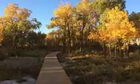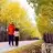 Some parts of the bridge are bright yellow. There are many poplar trees, and their trunks are thicker.