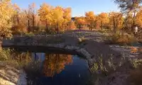 It belongs to the scenery in the Ejina Populus euphratica forest scenic area, but not to a certain bridge.