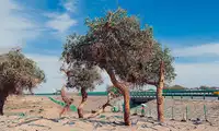A bridge: There is a bridge at the entrance of the scenic area, with sparse poplar forests. You need to walk across the bridge to take the scenic area bus. There is a camel riding project here, which can take tourists to the bus boarding point.