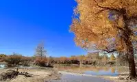 The scenery of the Populus euphratica forest is most beautiful in mid-October, when most of the leaves turn yellow. The blue sky, yellow leaves, green water and yellow sand complement each other, creating a magnificent scenery!