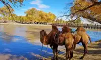 A day of traveling in the beautiful Ejina: Walk from the gate to Erdao Bridge to enjoy the best poplar forest. The poplar forest at Erdao Bridge is yellow and has different postures; the reflection forest is more interesting. Then take a car to Sidao Bridge to enjoy the Hero Forest. The leaves of the poplars here are only half yellow. The yellow and green interlaced, plus the thick trunks here, also have a unique flavor. Take a car to Qidao Bridge. The poplars here are small and cute, and the leaves are more pure than those at Erdao Bridge, but the poplars are young and the trunks are small and not high. When I first got there, it seemed like I had just pumped water into the forest. The water surface was full of fallen yellow leaves, the water surface was turbid and not transparent, and the reflections were not in shape. Finally, I took a car to Badao Bridge, which is actually a separate desert kingdom. The separate 50 yuan ticket was forced to be added when buying tickets at the gate of the scenic area. This landscape is the northernmost edge of the Badain Jaran Desert, with several sand dunes. The characteristics of the desert - camels and off-road vehicles are indispensable!