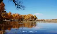 Get up at 4:30 in the morning and set off for the Populus euphratica forest scenic area to see the most beautiful sunrise of Populus euphratica. There are five scenic spots. If you want to go to the desert to take pictures of the sunrise, enter the scenic area and take a bus directly to Badao Bridge on the left hand, and then return to Yida Bridge to continue to play in order. Special reminder: No matter which scenic spot you are in, if you want to return to the entrance of the scenic area, you must first go to Badao Bridge to take the return bus. I went to Badao Bridge to watch the sunrise in the desert. It took about 25 minutes to reach Badao Bridge. Climb up the highest sand hill with few people in the dark and wait for the beautiful sunrise. Be sure to wear more clothes. I almost froze to death on the sand hill before I saw the sunrise. Slowly, the east was red, and the red disappeared at about 7:20. The soft golden light spread to the desert and oasis. The endless yellow (sand); the quietly flowing Juyan River - outlines a beautiful picture. We came to the highest point in the depths of the desert and stopped to take pictures. The scenery in front of me stunned me. The master told me that the desert oasis is basically drying up now that the water level has dropped. The water is artificially pumped from the Heihe River to nourish this land. Turn back to Yidao Bridge and walk to Erdao Bridge to see the most beautiful poplars and experience their spirit. You will never get tired of the beautiful scenery along the way. Erdao Bridge and Sidao Bridge are the best places to take pictures of the reflections of poplars. Sidao Bridge is also known as the Hero Forest. It was famous for the duel between Maggie Cheung and Zhang Ziyi in the woods in Zhang Yimou's "Hero". Now it attracts countless tourists. Stroll among the immortal poplars, and feel that they live for a thousand years without dying, die for a thousand years without falling, and fall for a thousand years without decaying. This is the closest place to heaven and hell! There is also a witness to the raging sandstorms and the couple tree that has been hand in hand for three thousand years~