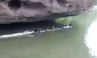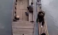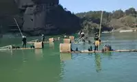 Bamboo rafting and cormorant hanging coffin performance in the morning