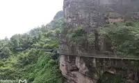 I climbed the stairs for about ten minutes and reached the high-altitude plank road. The scenery in the distance was beautiful. I could see the Jinqiang Peak and Luxi River, but these were not within the scenic area.