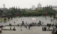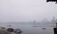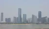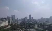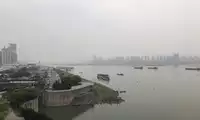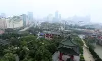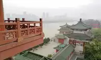 Across the Tengwang Pavilion is Qiushui Square, where you can see the Nanchang Star Ferris Wheel from afar. But because of the haze, it's not very clear.