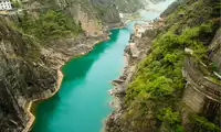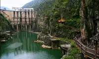 The scenic area is full of lush trees and rugged rocks. It has magnificent water conservancy landscapes, vast water scenery, and profound cultural and historical relics. It is the site of the first batch of national key cultural relics protection units, Shimen, Baoxiadao and its cliff carvings; it also has the world's earliest artificial tunnel - Shimen.