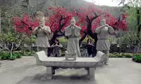 The first thing that comes into view at the west entrance is the Han and Tang style building. The color is simple and bright, the roof is stretched and flat, and the doors and windows are plain, but it gives people a solemn and generous impression. Continuing forward, what comes into view is a three-level waterfall with a height of 40 meters and a width of 53 meters. The most eye-catching thing is the woman playing the piano elegantly in the mist, accompanied by cranes, like a fairy mirror. So I secretly wondered, "Could this be the cold beauty Bao Si, one of the four great beauties?
