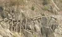 Plank road between cliffs.