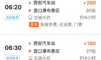 I started from Xi'an and saw a tourist direct bus on Ctrip (as shown in the picture below). Although it was booked on the bus ticket interface of Ctrip, it was actually a one-day tour and was also sold on other travel websites (such as Qunar.com). Many passengers on the bus thought it was a round-trip bus ticket to Hukou Waterfall. As a result, when waiting to get on the bus, I found out that it was a separate group. It was said on the Internet that it would depart from Xi'an at 6:30 in the morning and drive about 4 hours to the destination. However, the bus picked up people everywhere in Xi'an that morning. It was already past 8 o'clock when it actually departed, and it was about 1 o'clock in the afternoon when it arrived at the scenic spot. In addition, the tour guide on the bus also asked us to "voluntarily" pay 30 yuan per person per meal for food. The tour guide meant this: the food fee is voluntary, but firstly, the bus must stop at the collective dining area for everyone to eat; secondly, the dining area will give priority to the group, and the individual will be delayed, so everyone in the car has to wait for you. What a joke! What kind of voluntary is this?