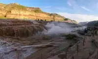 If it is winter, the entire water surface freezes, forming a rare huge ice waterfall.