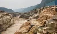 The Yellow River is the mother river of the Chinese nation. Hukou Waterfall is a shining pearl inlaid on the winding Yellow River. It is also the only golden waterfall in the world. "The source is from Kunlun and the flow is great. The nine turns of Yuguan are collected in a pot." The Yellow River flows through the Huangshi Plateau and enters the Qinjin Gorge. The riverbed suddenly shrinks from 400 to 50 meters wide to 40 to 50 meters, just like a huge pot pouring out soup. Hukou got its name from this.