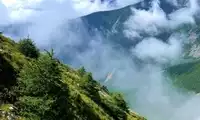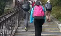 After buying the tickets (including transportation within the scenic area), the weather was still good when I got on the scenic area transportation bus. It started to rain after driving for a while. When I arrived at the first scenic spot, Lotus Peak Waterfall, it rained heavily. The umbrella I brought was useless, so I had to buy a raincoat urgently. The rain stopped at 12 noon, and my clothes were soaked. After watching the waterfall, I walked through the Shuhan Ancient Plank Road and arrived at the second bus stop to take a bus to the Utopia Scenic Spot. Then I took a bus to Xiaban Temple to take the cable car to the top. This cable car goes directly from an altitude of more than 2,500 meters to Shangban Temple at an altitude of more than 3,500 meters. You can see a more obvious phenomenon of one mountain dividing north and south. If you don't take the cable car, you can also hike to the top, but we didn't try it. Follow the road on the top of the mountain and pass Tianyuan Square to reach the small Confucian Temple. Going further ahead are Dayehai, Eryehai, Sanyehai and other scenic spots, but according to the staff, it takes another three and a half hours to hike to the nearest Dayehai, so I had no choice but to give up.