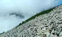 The cable car station at an altitude of 3511 meters has been completely wrapped in clouds and fog, with visibility less than 100 meters. There is only an occasional blue skylight and a vaguely discernible valley in the changing clouds and fog. The service facilities at the cable car station are very complete. The price of renting cotton clothes is the same as that of Honghuaping. Food is clearly marked and is not cheap. Many tourists choose to dine here. More tourists take Tianyuanfangdi as the terminal of the Taibai Mountain trip. Some people take the Tianxia cable car directly back to Honghuaping after viewing the scenery and taking photos at the top of the mountain. Some people will walk to the Fuyun Pavilion cable car 2 kilometers away to go down the mountain. Along the way, the vegetation began to decrease and the rocks became more and more.