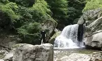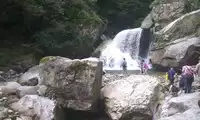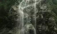Following the sound of water, we arrived at the legendary Lotus Peak Waterfall with other tourists. Seeing the white waterfall cascading down in front of us, we couldn't contain our excitement and quickly took out our mobile phones to capture the scene.