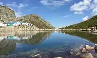 Finally, we are about to reach Baxiantai, the highest point of Taibai Mountain. On the way to Baxiantai, we can see the high mountain lakes surrounded by the sea of rocks at the foot of the mountain - Erye Lake and Sanye Lake.
