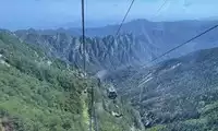 3. Take the sightseeing bus and transfer to the cable car: queue up at the tourist service center to check your ticket and then take the bus. The first bus (about 20 minutes): after getting off the bus, walk to the Lotus Peak Waterfall, which takes about 0.5 to 1 hour. Then take the second bus (about 20 minutes): visit the Pomo Mountain (Three Kingdoms Ancient Plank Road) and the Utopia. Take the third bus (about 50 minutes): go to Honghuaping (transfer to the Tianxia Cable Car: one-way 130 → Tianyuandifang) or Xiaban Temple (transfer to the Fuyun Pavilion Cable Car: one-way 50 → Shangban Temple → walk to Tianyuandifang).