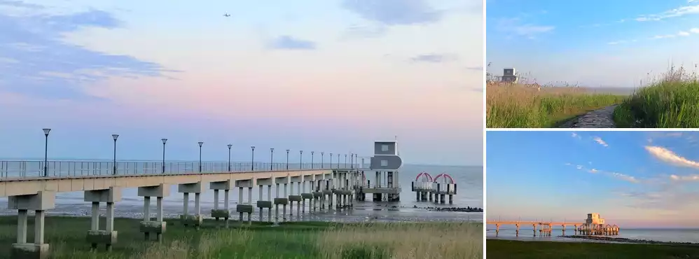 The Dongtan Wetland is located in a relatively undeveloped area. It is a migratory bird sanctuary where you can watch the sunrise.