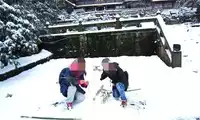In early December, two classmates and I set out from Qingyin Pavilion early in the morning and finally reached this place after a long day of climbing. I love snow, and the word "tired" couldn't begin to describe how exhausted I felt all the way here. But once we arrived, faced with such beautiful scenery and the thick snow, we instantly felt rejuvenated and full of energy! The excitement was indescribable! When we arrived, besides a few women selling things, it was just the three of us, and someone had built a snowman. So cute! We played for a bit, grabbed some water, and continued on our way!