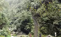 The scenery along the way is very nice. Tourists walk through very dense and tall forests. From the roadside signs, we know that the area from Hongchunping to Xianfeng Temple is a subtropical evergreen broad-leaved forest belt, with nearly 50 species of herbaceous plants such as Podocarpus, Yellow Heart Night-jasmine, Phoebe, Cypress, Collarwood, Red fennel, Michelia emblica, Cunninghamia lanceolata, Cyclobalanopsis truncatum, and Camphor tree. It is a typical and complete subtropical evergreen broad-leaved forest belt.