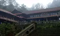 Xianfeng Temple, also known as Xianfeng Zen Monastery, is one of the eight major temples on Mount Emei, standing at an altitude of 1,725 meters. It was expanded in 1612, the 40th year of the Wanli reign of the Ming Dynasty, destroyed by fire in the late Ming Dynasty, and rebuilt during the Qianlong reign of the Qing Dynasty. The temple's gate faces Huayan Peak. Following the path outside the temple, you'll find a hexagonal pavilion with stone pillars, known as Tianhuang Terrace. From here, you can admire the fertile Emei Plain.