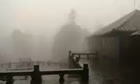 Standing on the corridor and gazing out, a thin layer of morning mist covered the mountains and houses. The air was filled with the unique fragrance of wooden buildings. Raindrops fell on the eaves, as if accompanying the sound of bells and chanting...