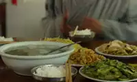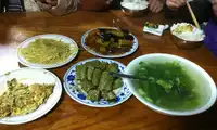 In the dining hall behind Xianfeng Temple, you can enjoy Arhat Rice, which costs 30 yuan per person and is all you can eat. It's said to be available only on the 15th and 30th days of the lunar calendar. It's a stew of over 10 ingredients, seasoned with just oil and salt, but lightly seasoned, allowing you to savor the original flavors. The staff and monks all eat this. Stir-fried dishes are also available, such as stir-fried bitter melon, for 25 yuan per serving. While it may seem expensive, it won't seem so after traversing the mountain path, as everything is carried up by hand.